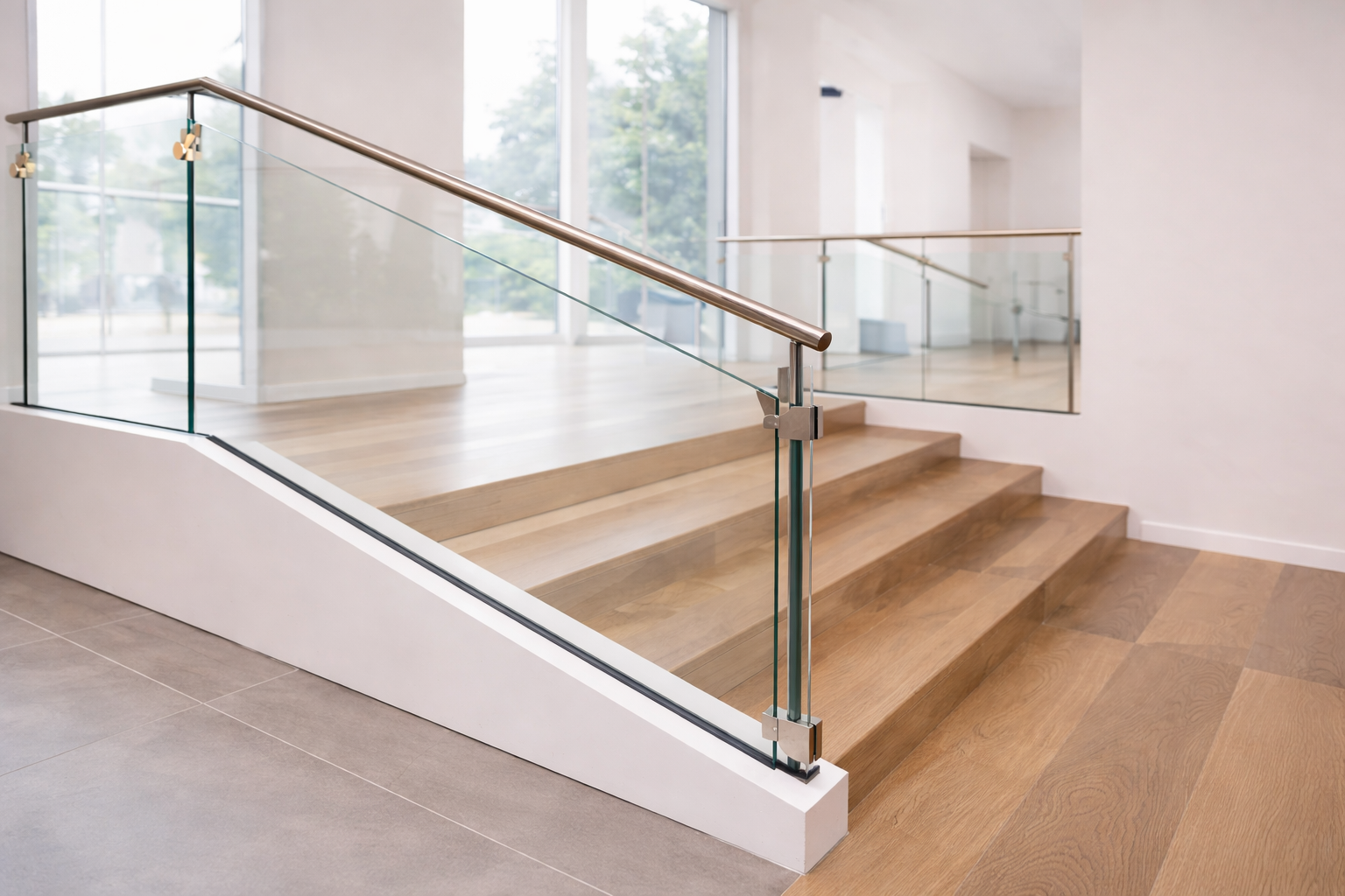 Geländer aus Glas schaffen Offenheit und lassen Räume größer und heller wirken. In Verbindung mit Holz oder Metall entstehen elegante Lösungen, die besonders in modernen Wohnbereichen Akzente setzen.